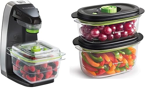 Système FoodSaver de conservation des aliments frais, machine sous vide alimentaire FFS010X & Boîtes alimentaires de conservation et marinade |Vont au lave-vaisselle | 700 ml & 1.18 L | 2 unités