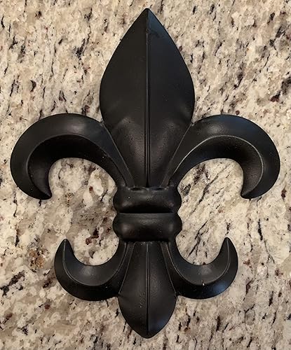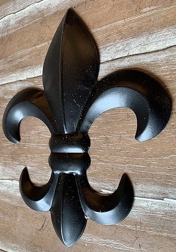 Plaque murale en métal Fleur de Lis avec crochet de suspension Motif floral rustique Toscane Noir 20,3 cm