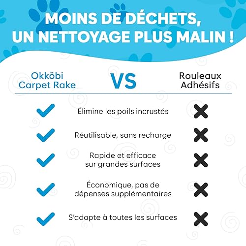 Balai Anti-Poils Animaux – Brosse en Silicone pour Chien et Chat – Ramasse Poils pour Moquettes, Tapis, Sols et Meubles – Accessoire Réutilisable par Okköbi