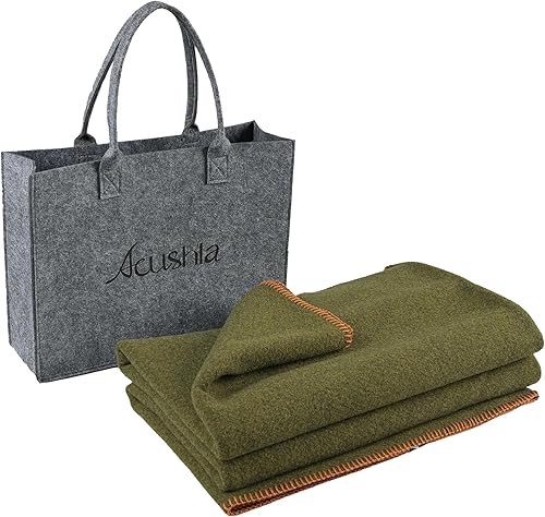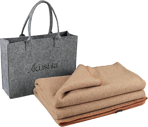 ACUSHLA Couverture en Laine Mérinos 160 x 200 cm - Douillette à 80% de Laine de Mouton Mérinos - Grande et Moelleuse, Parfaite pour Canapé - Kaki