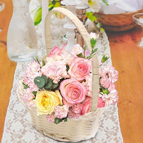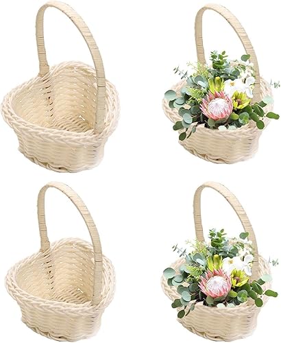 Corbeille En Osier Avec Anse | 4 Pièces Panier En Osier De Demoiselle D'honneur En Forme De Cœur | Paniers En Osiers En Rotin Avec Poignée | Décoration De Mariage Et De Pâques