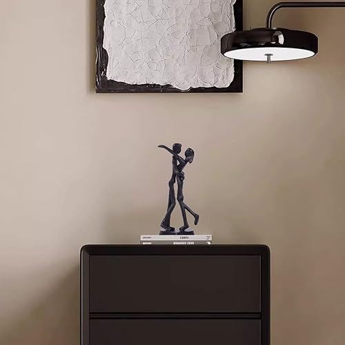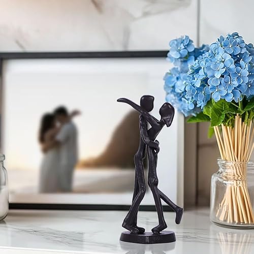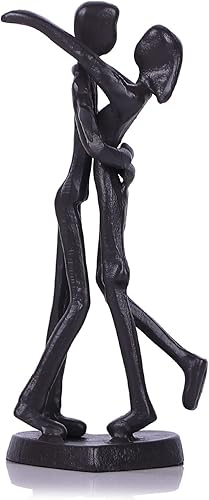QIANLING Sculpture en Fer de 15 cm - Kit de Fonte pour Couples avec Base, Statue de Couple Amoureux, Cadeau d'Anniversaire pour Couple, Décoration de Maison pour Couples, Couple en Métal Noir S'Enlace