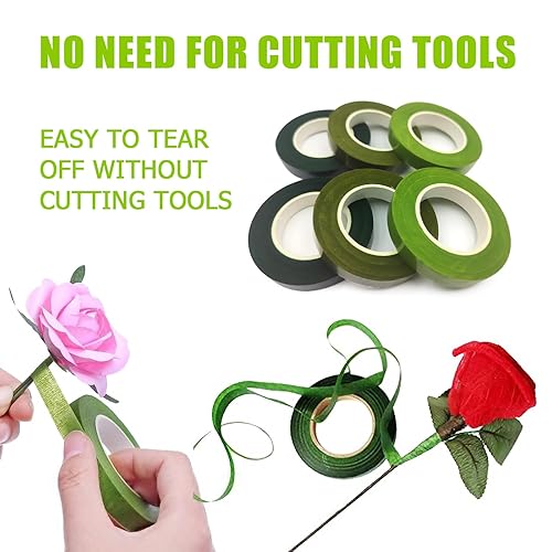 HZXINYI 6 Rouleaux Florale Rubans Jardinage Ruban Demballage de Tige de Fleuriste Auto AdhéSif Ruban Floraux pour Bouquet Emballage de Fleurs Couronne de Mariage(3 Couleurs)