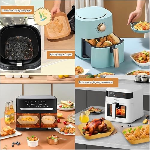 ChaneeHann Papier Cuisson Air Fryer Et Papier Air Fryer 150 Pièces (100PCS 5.2L + 50PCS 10.4L) Antiadhésif Pour Friteuse À Air, Four Et Micro-ondes