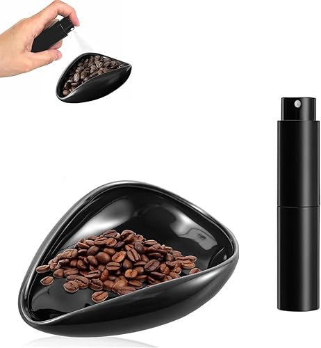 JOYOLA Kit de Plateau de Récipient de Dosage de Grains de Café, Tasse Doseuse de Grains de Café en Céramique avec Flacon Pulvérisateur, Accessoires de Café Unique Cadeau Pour les Amateurs de Café