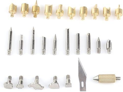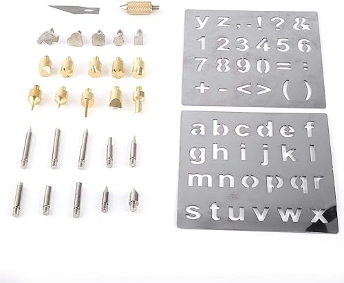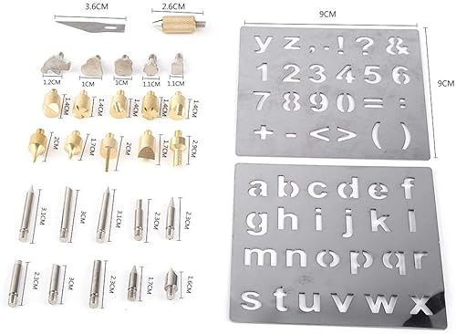 28 pcs Kit de combustion du bois, Pyrogravure stylo à bois sculpture embossage conseils de soudure Conseils de sculpture sur bois avec chiffres alphabet symboles pochoirsMatériel pour chauffage au