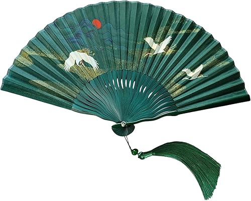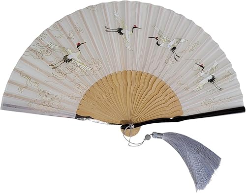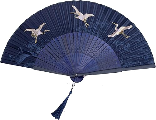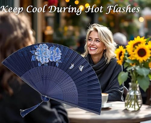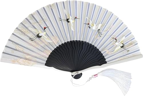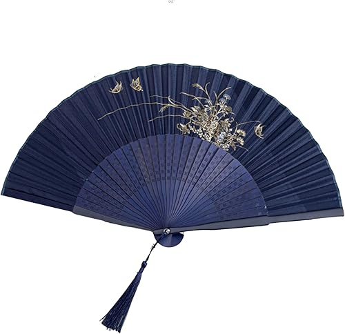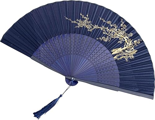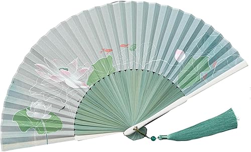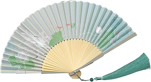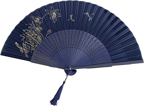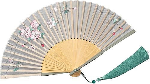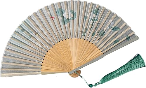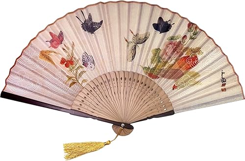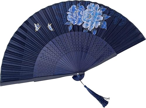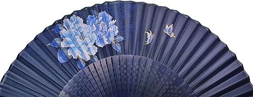 GFM® Éventail pliable en soie de bambou pour l'été, mariage, fête, etc. (FLSLK-MR-E) (F10-Japanese-Pivoine) (FLSLK-F10-19)