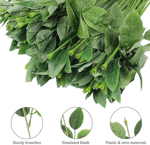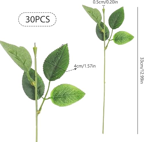 Tiges de Rose avec Feuilles 30 pcs 13 Pouces de Fleurs artificielles tiges de Fil Floral Bricolage tiges de Fil Floral Pliables tiges de Fleurs réalistes pour l'artisanat, tiges Florales