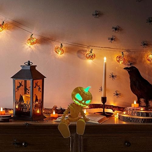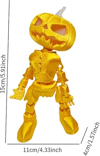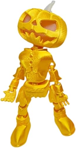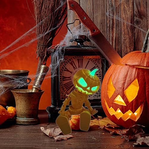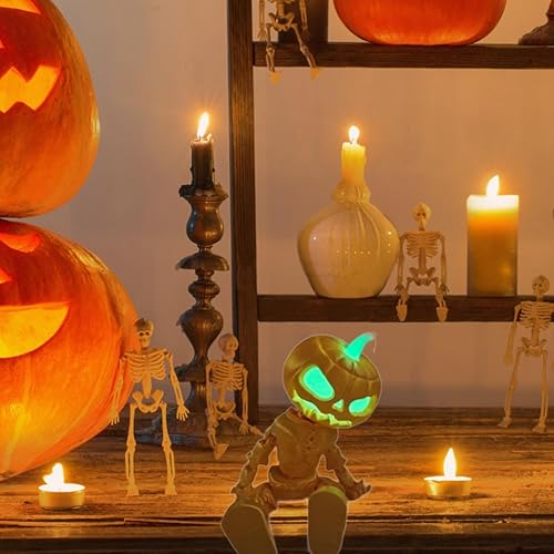Folpus Décoration de Citrouille Lumineuse pour Halloween, Statue Lumineuse, Figurine Citrouille Zombie pour Cuisine, Table à Manger, Cour, bibliothèque, fête, Rouge Doré