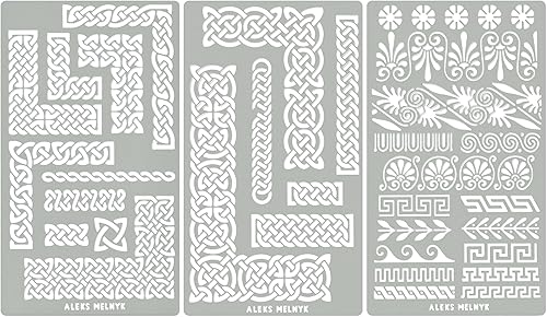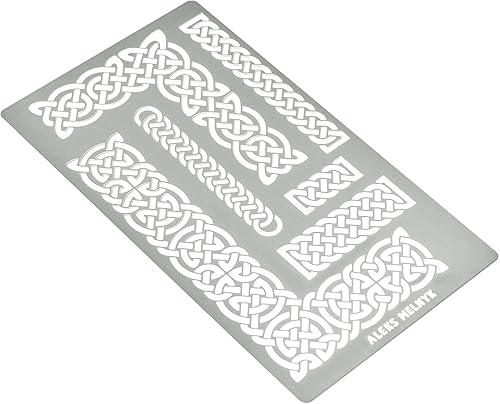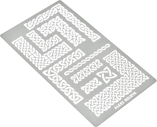 Aleks Melnyk #36 Petits pochoirs à bordure pour scrapbooking, pochoirs en forme de clé grecque, nœud celtique, pochoirs viking ornés, pochoirs en acier, pochoirs métalliques pour gravure, pyrogravure,