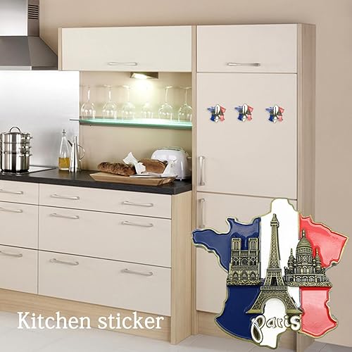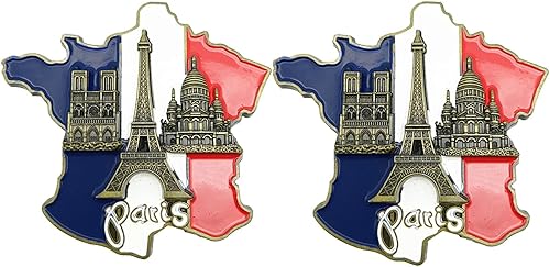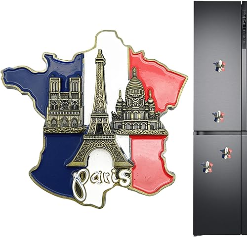 Magnette Aimant frigo France,Aimants Paris Architecture France,Aimant De Frigo en Métal Représentant Trois Grands Bâtiments De France sur La Carte,Autocollant De Réfrigérateur-2 Pieces