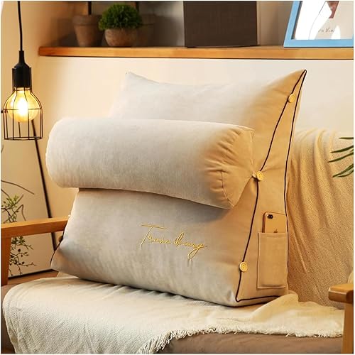 Coussin de Lecture Triangles, Coussin de Dossier Réglable avec Housse Amovible, Coussin Dossier Canapé, Coussin de Lecture en Mousse à Mémoire de Appui Tete Canape,Largeur Accrue (Laiteux,60*50*20cm)