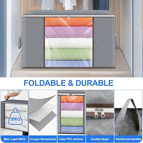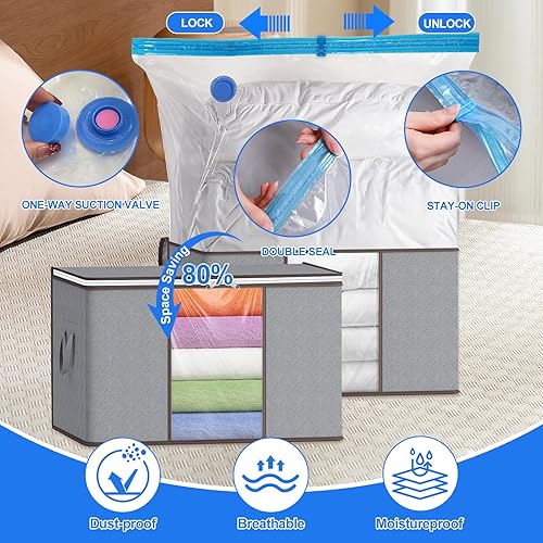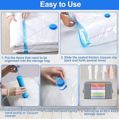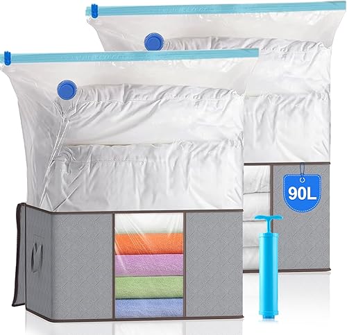 Housse de Rangement Couette, Rangement Vetement - 2 Sacs Sous Vide, 2 Sacs de Rangement avec Poignées de Renforcement et 1 Pompe - Solution de Rangement pour Vêtement, Duvet, Couette & Oreiller