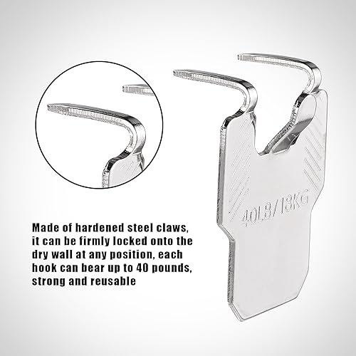 Lyreh 20pcs Griffes Tableau Cloison Sèche, Acier Inoxydable Sans Clou Crochets pour Miroir Supporte Jusqu'à 18,14 Kg pour Cadre Photo Miroir Œuvre d'Art