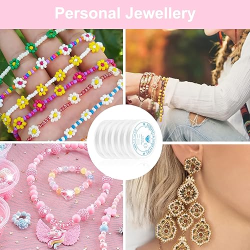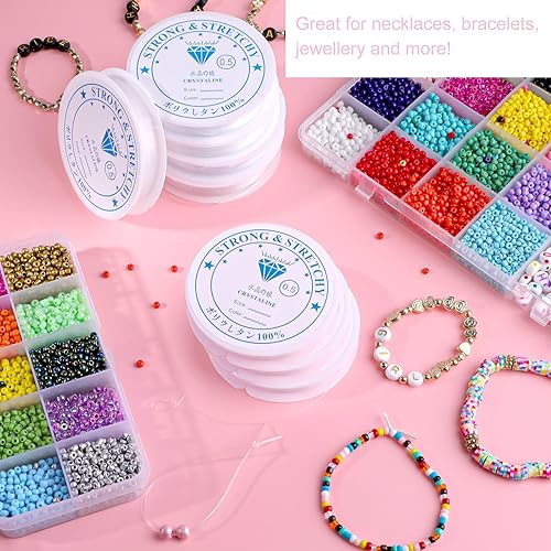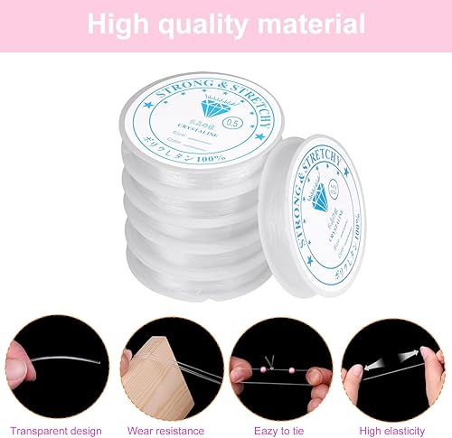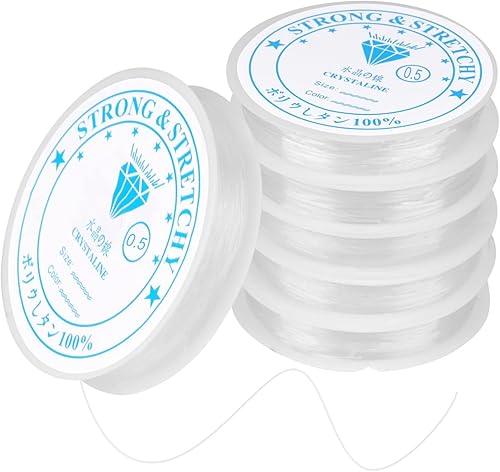 DOETYD Lot de 6 Rouleaux de Fil élastique Transparent de 0,5 mm pour Fabrication de Bracelets, Perles et Colliers