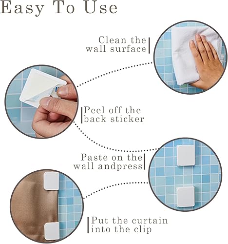 Lot de 4 Clips de Rideau Douche Auto-Adhésifs, Clips de Rideau Anti-Eclaboussures Coupe-Vent, Clips de Protection Coupe-Vent, Clips Anti-Eclaboussures de Douche Auto-Adhésifs, pour Rideau(Bblanc)