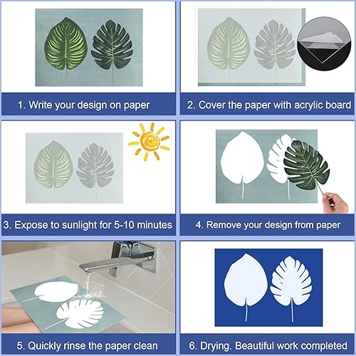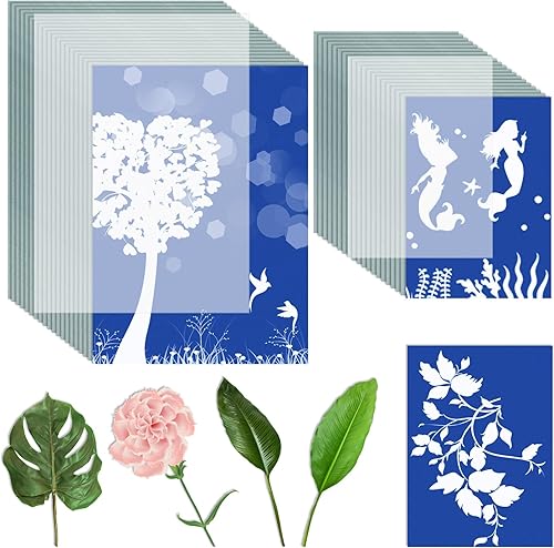CosyCaya Cyanotypie - Lot de 40 feuilles de papier d'impression solaire - Format A4 A5 - Avec feuille acrylique - Papier d'impression solaire naturel - Pour enfants et adultes