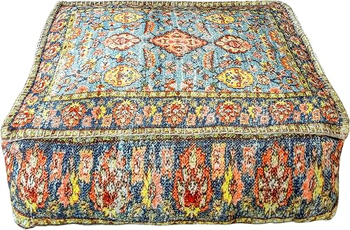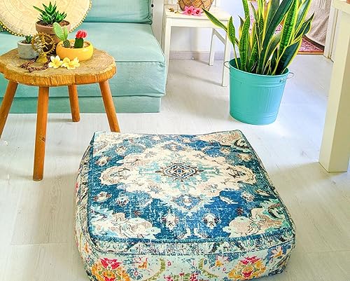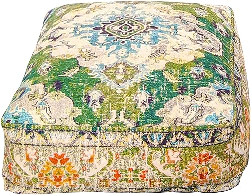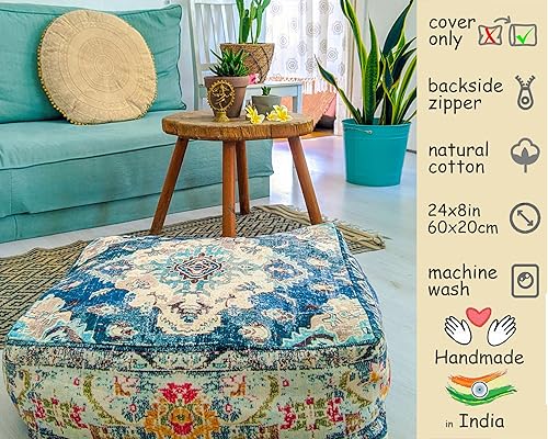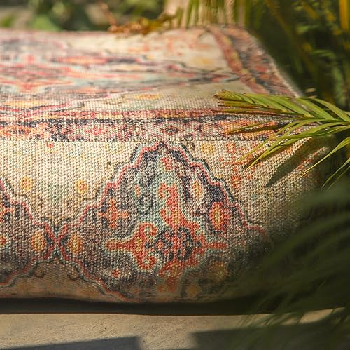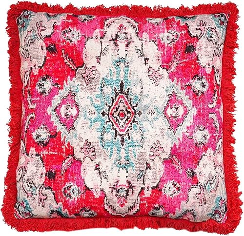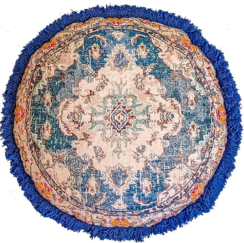 Mandala Life ART Boho Chic Yoga Decor Housse de Coussin de Méditation - 65 cm - avec Frange Vintage - Taie d'oreiller Del Sol - Carrée - Zafu décoratif en Coton imprimé