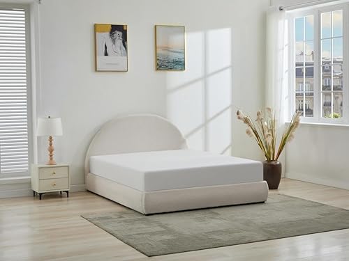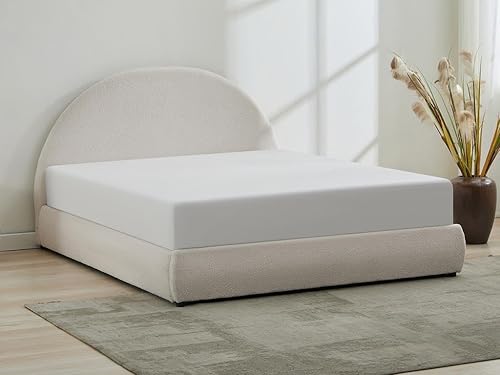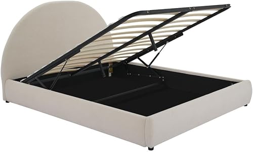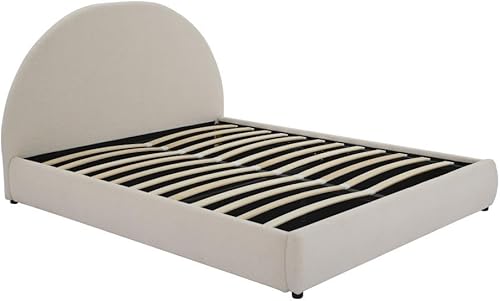 Vente-unique - Lit Coffre 140 x 190 cm - Tissu Bouclette - Crème - LIRIMO