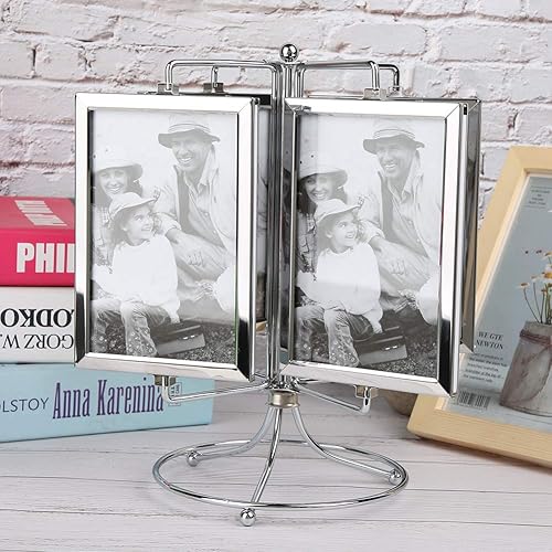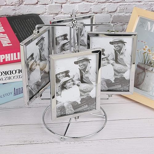 Ymiko Cadre Photo Rotatif à la Maison, présentoir Photo pour Photo 4x6in, Cadre de Menu Rotatif pour Restaurant, Cadre Photo de Table de Bureau Multiple de rétro Vintage avec