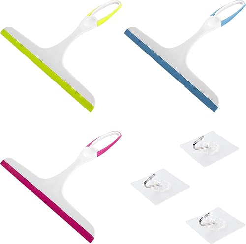 Lot de 3 essuie-glaces de salle de bain, crochets en 3 parties, lame en caoutchouc de nettoyage pour verre, grattoir en plastique, essuie-glace de douche, convient pour le nettoyage de la douche, des