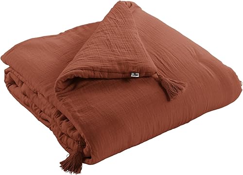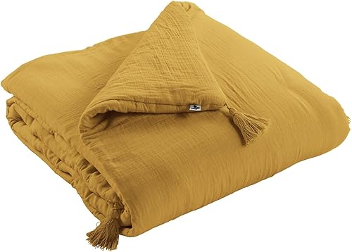 Mylittlebed Edredon Couvre lit 150x150cm L’Effet Papillon® - Boutis 100% Gaze de Coton 125gr/m² pour lit 2 Personnes [ Couvertures, Plaids et boutis ] (Jaune Safran)
