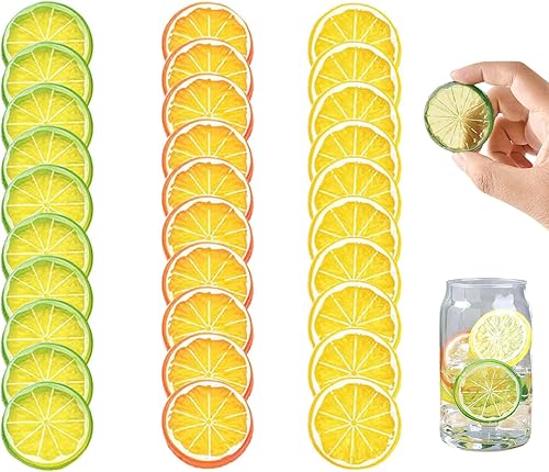 FloralGrace Ensemble de 30 Fruits Artificiels pour Décoration, Citrons Artificiels, Décoration de Fête, Tranches de Citron Artificielles pour Décoration de Fêtes et Festivals