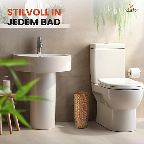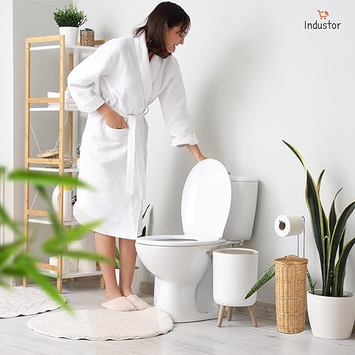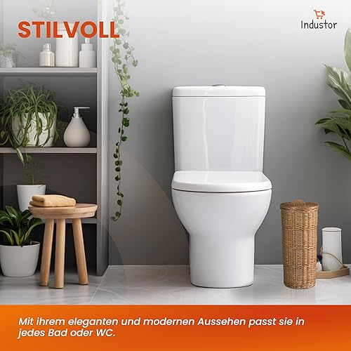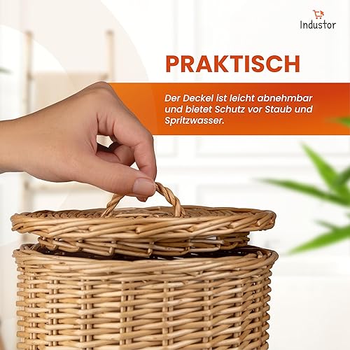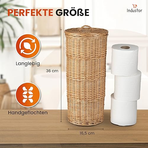 Industor® Rangement de papier toilette en osier – Papier toilette debout pour 3 rouleaux de papier toilette avec couvercle – Accessoire de décoration de salle de bain
