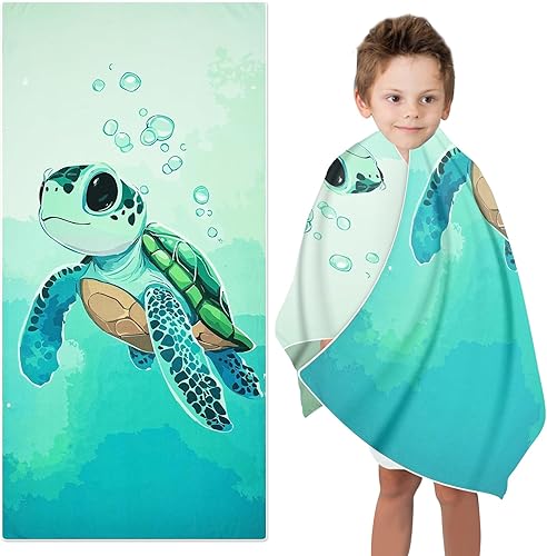 TZQFROCE Serviette de Plage pour Enfants 70x140cm Garçons Tortue de Mer Serviette de Plage Serviette de Plage Garçons Natation Serviette de Douche Tortue de Mer Garçons Filles pour Plage Voyage