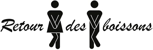 younikat Autocollant WC homme et femme - retour de boissons - autocollant de porte pour toilettes - autocollant amusant en 21,5 cm - noir - Restaurant Cafe Bar I dv754
