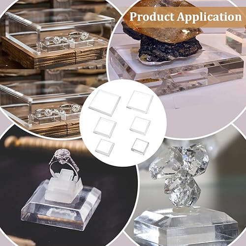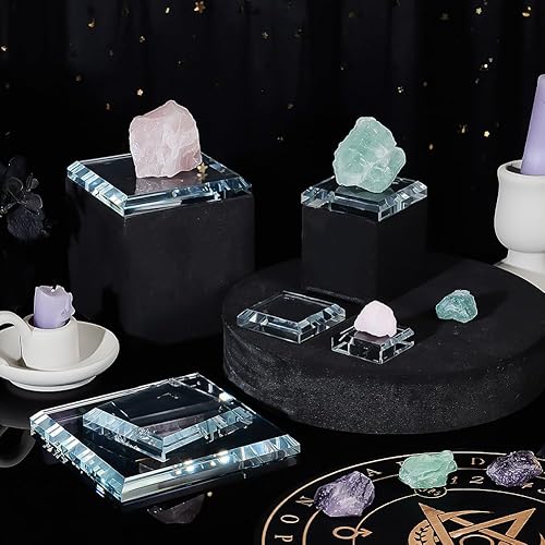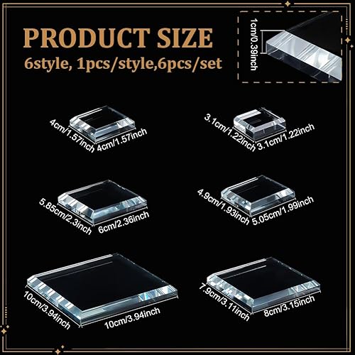 PH PandaHall 6 Pack Base de Présentation en Verre Cristal 6 Taille Supports Cristal Transparent Présentoir Carré Plat Support de Cube Socle pour Figurines Cristaux Collection Bijoux 3/4/5/6/8/10cm