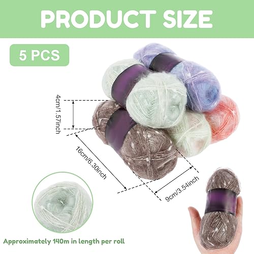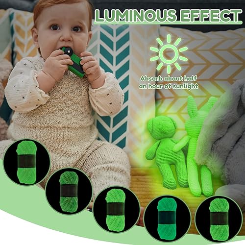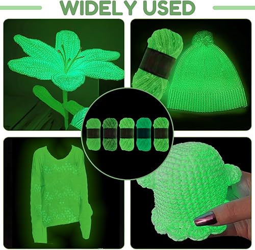 Fil lumineux phosphorescent - 5 x 50 g - 140 m - Fil polyester pour crochet et tricot - Fil à crochet et à tricoter - Respirant et réfléchissant - Pour loisirs créatifs, chapeaux, écharpes, gants,