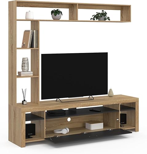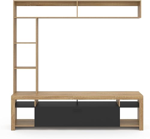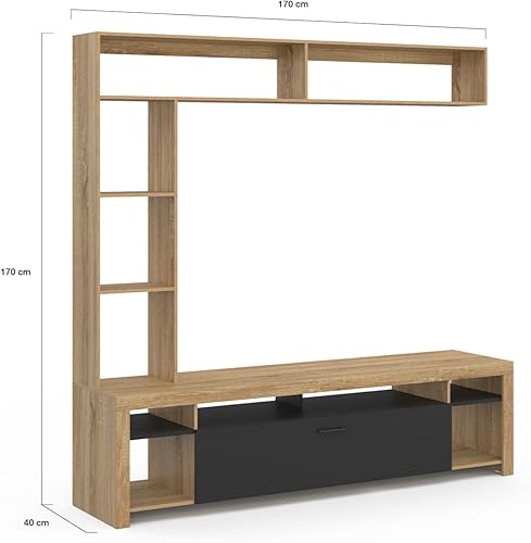 IDMarket - Ensemble Meuble TV et étagères 170 cm Malo Bois et Placard Noir