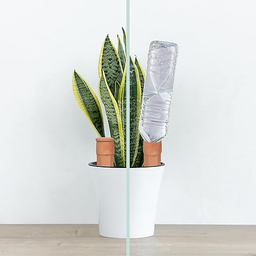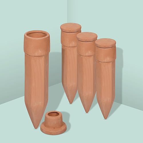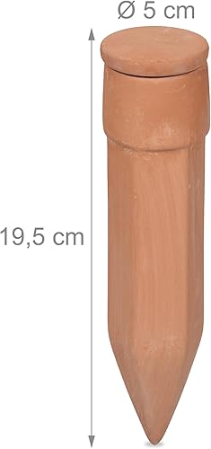 Relaxdays Cônes d'arrosage Terre Cuite, 4 pièces, Aide à l'arrosage avec Couvercle, pour Bouteilles de 1,5 l, Terracotta