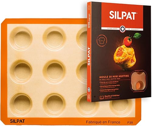 Silpat Moule 20 Mini Muffins – Cuisson Parfaite, Démoulage Facile – Silicone Antiadhésif – Cupcake, Financier Individuel- Résistant, Réutilisable – Qualité Professionnelle, Format Pratique