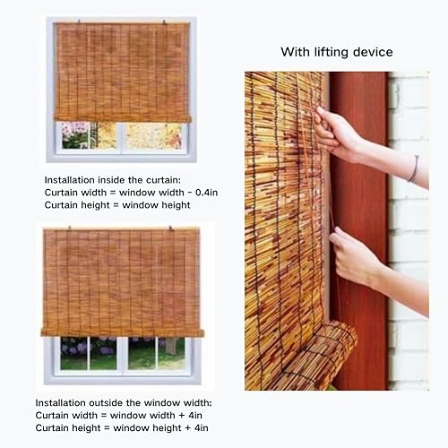 Générique Store Bambou Exterieur Terrasse Interieur Store Enrouleur Roseau 10 40 55 75 100 120 150 180cm Rideau Romains Imperméable Stores Occultant sans Percage