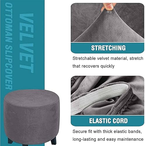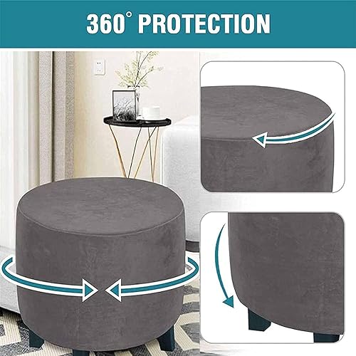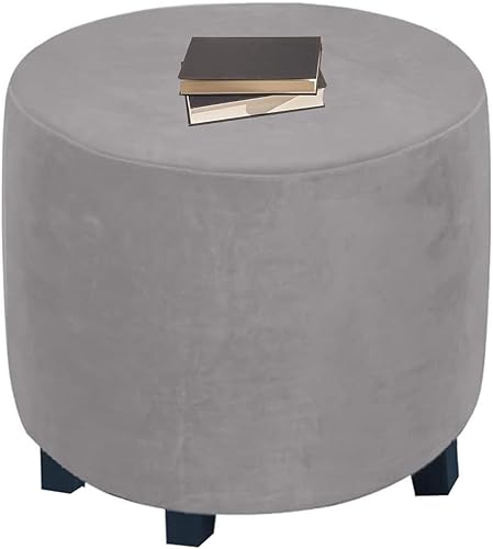 XGANGM Velours Housse de Pouf Ronde Extensible Housse Pouf Ottoman Diamètre W45~50/48~55/58~70/75~88/90~105CM, H30~40CM Housse de Protection Repose Pieds Personnalisable,C,W90~105 X H35~40CM