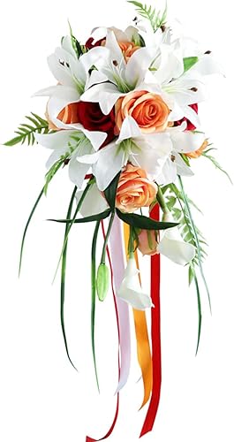 Fouriding Bouquet de Mariage pour Mariée,Bouquet de Fleurs Artificielles pour Cérémonie Anniversaire Douceur de Mariage Décoration de Mariage (Lys Calla)