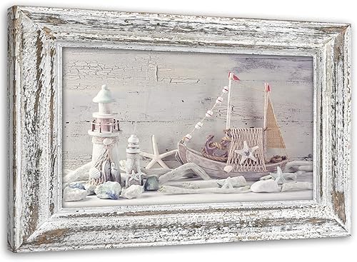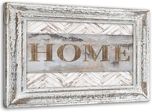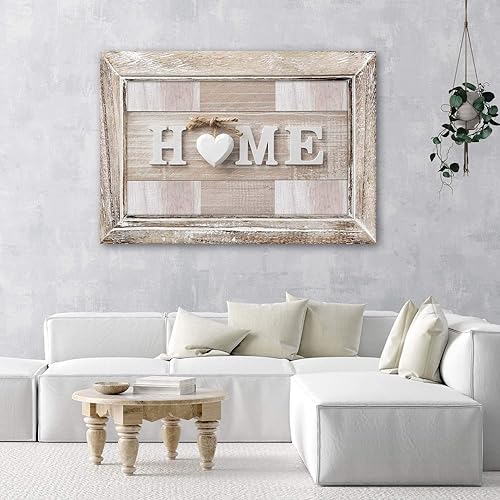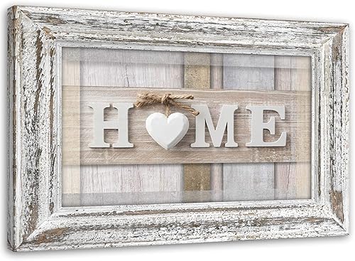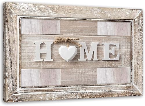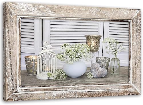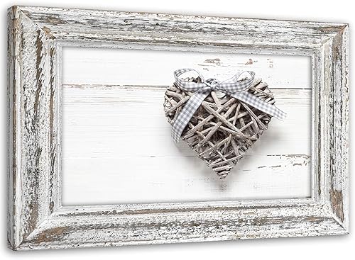 Feeby Tableau déco mural vintage rétro 90x60 cm Image moderne coeur rameau nœud de ruban gris