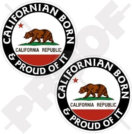 California californien Né et Fier, USA Amérique 75 mm (7,6 cm) Vinyle Bumper Stickers, décalcomanies X2