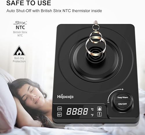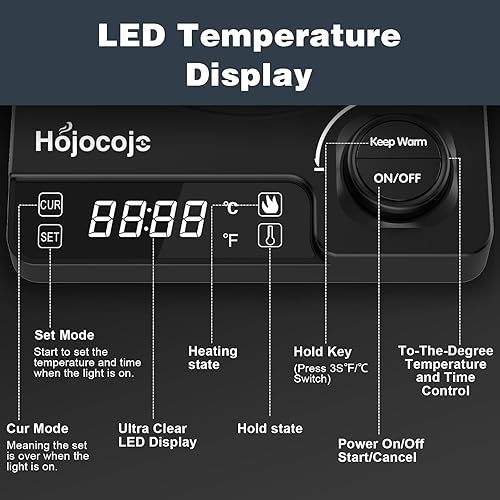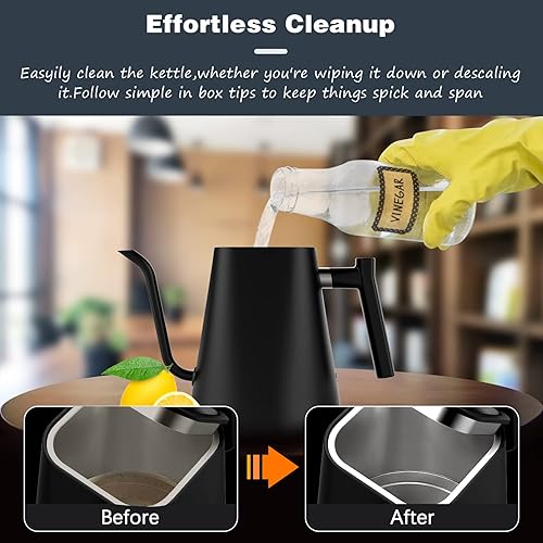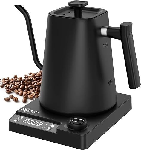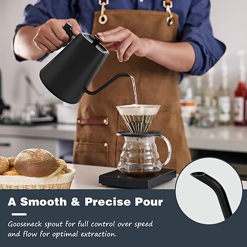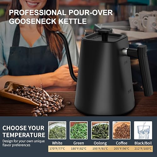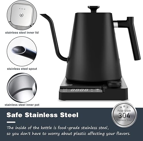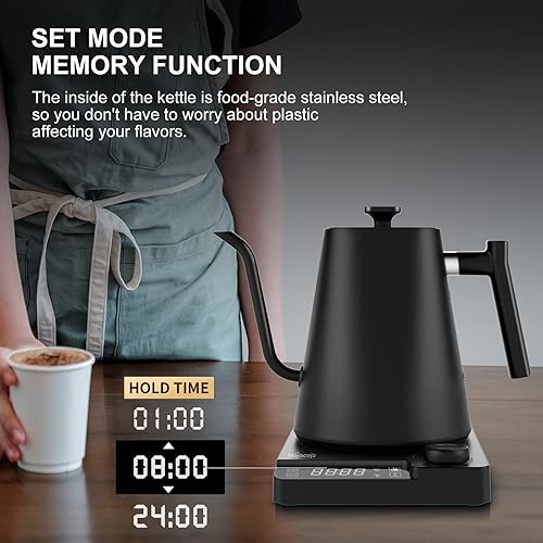 Bouilloire électrique 1L en acier inoxydable avec réglage de la température,col de cygne Bouilloire, fonction de chaleur 24 heures, bouilloire électrique avec affichage de la température,1200W Noir