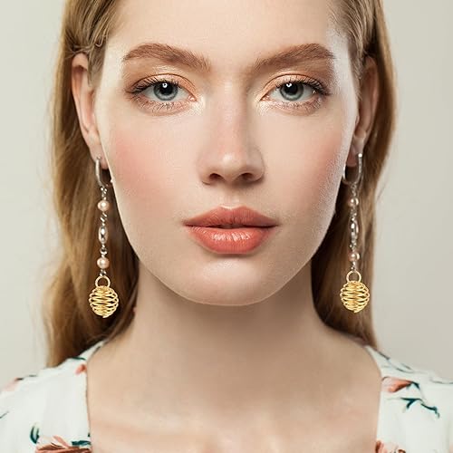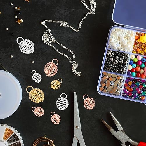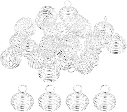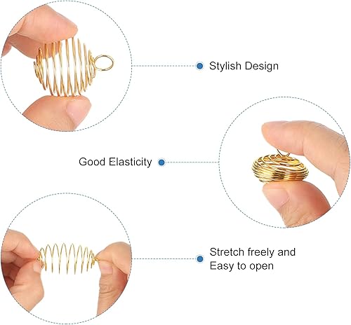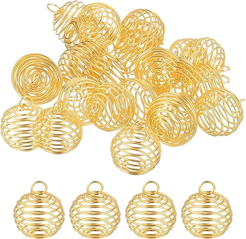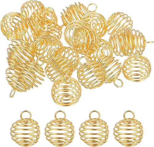 QUARKZMAN 50Pcs Pendentifs en Cage Spiralée, 15x14mm Porte-Pierre Collier Pendentifs Creux pour Fabrication de Bijoux, Ton Or