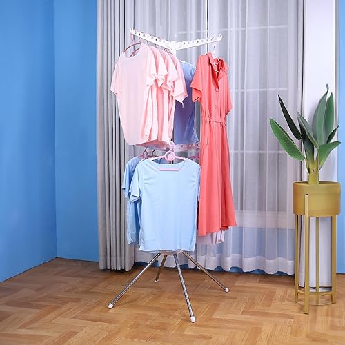 Séchoir à Linge sur Trépied, Étendoir à Linge Portable Pliable avec 3 Bras Rotatifs, Étendoir à Vêtements Pliante en Acier Inoxydable, Support de Cintres Porte-Vêtements pour Intérieur Extérieur