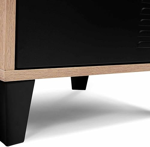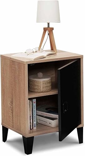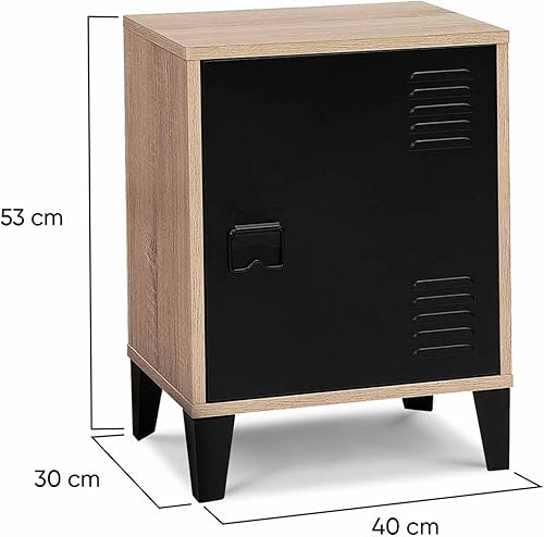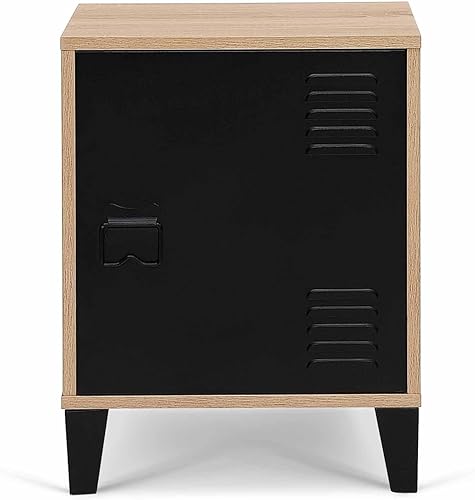 IDMarket - Table de Chevet Ester Effet Bois 1 Porte métal Noir Design Industriel