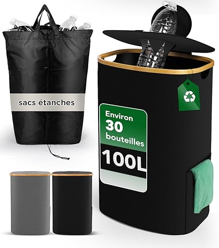 SOUTHGATE 100L Collecteur de Bouteilles Avec Couvercle, Bouteilles Poubelle Recyclage, Sac Recyclage Amovible, poubelle tri Selectif Pour Plastique, Bouteilles Verre, Gris
