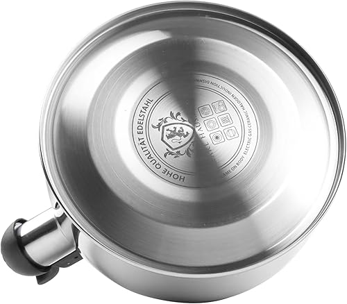KARL HAUSMANN Bouilloire Inox Argenté - 2L - Bouilloire Sifflante - Bouilloire Induction, Gaz - Poignée Résistante à la Chaleur - Bouilloire Traditionnelle Tous Feux - Retro - Théière Gaz - Bouilloir