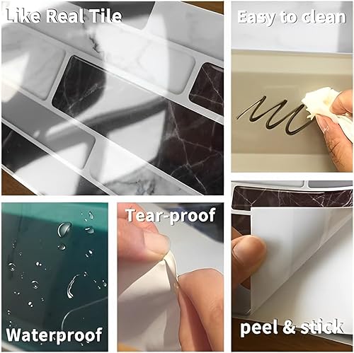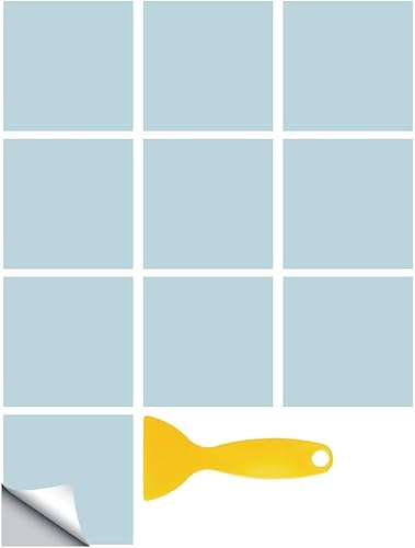 Hixingo Carrelage Adhesif Mural Cuisine, 20 Pièces Salle de Bain, Couleur Unie Rectangulaires Credence Adhesive pour Cuisine, Dalle Pvc Adhesive Murale Carrelage Autocollant (Bleu lac,15x15cm)