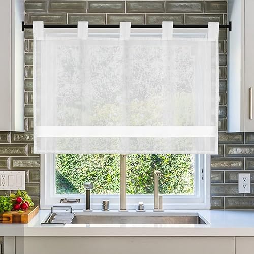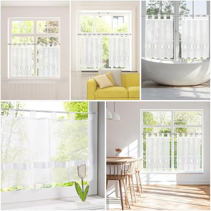 HWSWSH 2 PCS Rideau Voilage Blanc Translucide,Rideau Court Cuisine Suspendus, Rideau Voilage Décoratif Court, Rideau Romains Transparent, Rideau pour Fenêtre, Cuisine, Salon,Salle de Bain (60 * 90cm)