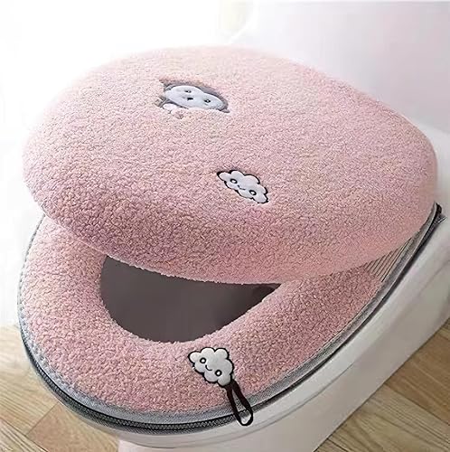 Qyjhska Housse de Siège de Toilette Multicolore Chaud Protection Housse de housses de siège de toilette épaisses et douces, lavables et compatibles avec tous les sièges de toilette (rose)