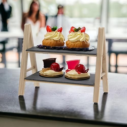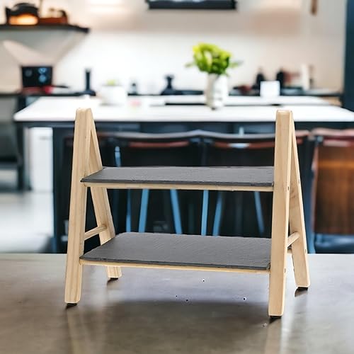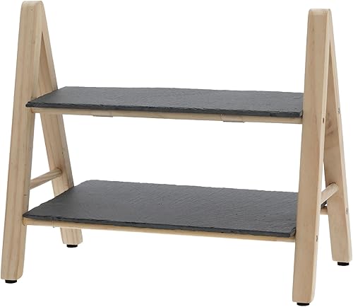 MIJOMA Présentoir en ardoise et bois de pin - Accessoire d'intérieur élégant pour une organisation optimale - 32 x 18 x 28 cm - Deux étagères robustes - Idéal pour une utilisation décorative et
